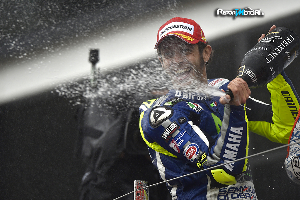Valentino Rossi: ” Sono molto felice e orgoglioso di questa vittoria, si tratta di un grande sensazione! Pensare che l’ultima gara sul bagnato che ho vinto è stato dieci anni fa. Questa mattina sono andato abbastanza bene, ma il mio team ha anche fatto un ottimo lavoro e la mia moto è stata fantastica già dal primo giro di warm up. Mi sentivo bene e ottenuto più feeling dalla moto, quindi sapevo di poter essere competitivo in gara. Ho lottato molto con Marc, è stato molto difficile. Ho sempre cercato di allontanarmi, ma è rimasto sempre alle mie spalle. Ho visto che Marc era caduto dal mega schermo e non ho sentivo il sound della sua moto, così ho pensato che forse era successo qualcosa. Dopo la sua caduta ho rallentato, perché ho pensato che avrei avuto abbastanza margine di vantaggio, ma in realtà Danilo non era così lontano, così ho dovuto recuperare la mia concentrazione e iniziare a spingere, perché se non l’ho avessi fatto mi avrebbe raggiunto. Questa è la mia quarta vittoria della stagione, quindi sono molto felice ed è importante per il campionato. Oggi sono stato molto veloce, ho avuto grande fiducia con la moto e si tratta di un fantastica vittoria a Silverstone, dove non ho mai vinto prima, questa è la prima volta! ”