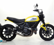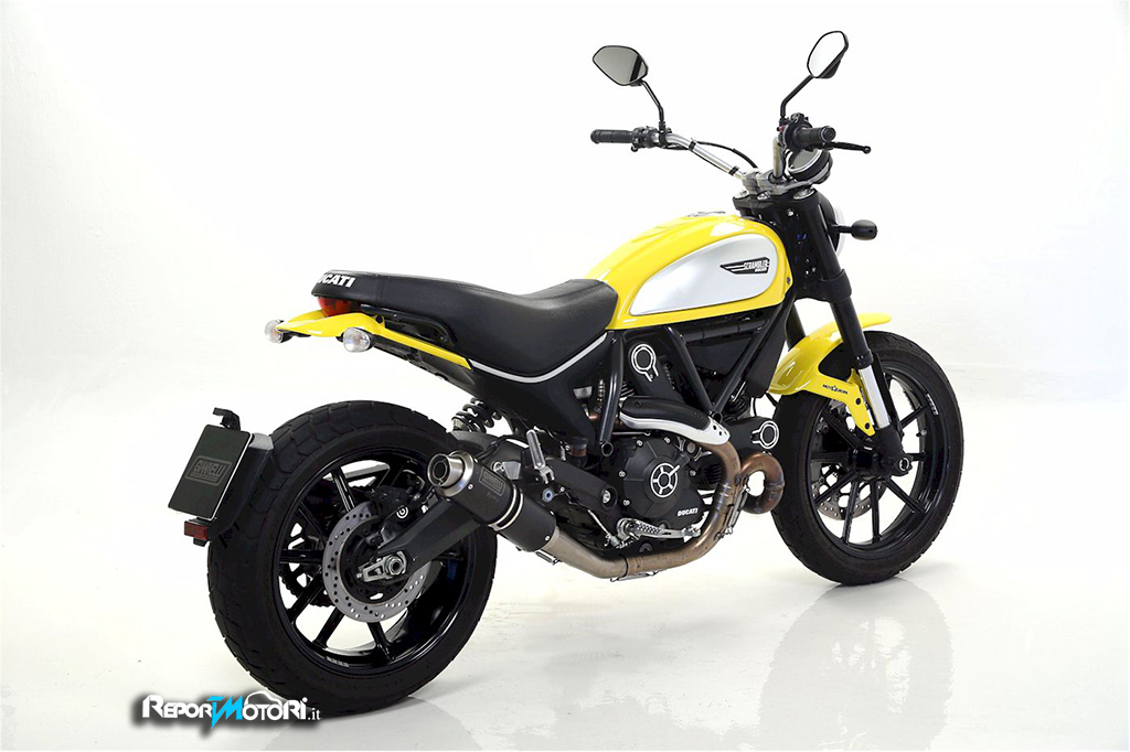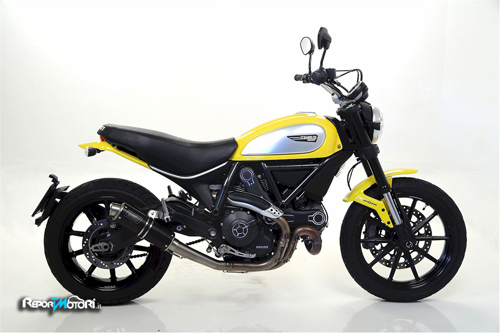 Dalla mitica Giannelli arriva per la nuova Ducati Scrambler il silenziatore X-Pro, uno finale slip on ( si monta sul collettore originale ) dotato di DB-Killer e struttura in acciaio con corpo nero .