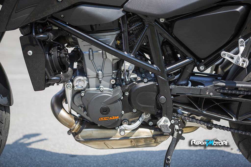 Le novità che cela questa KTM 690 Duke 2016 sono tante, a cominciare dalla presenza di un controalbero aggiuntivo, componente che contribuisce in maniera decisiva alla riduzione delle vibrazioni.
