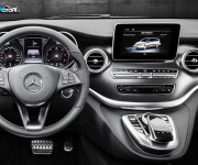 Internamente la nuova consolle centrale rispecchia la tendenza stilistica delle ultime Mercedes, integra anche un utile frigorifero e dispone di diversi vani portaoggetti, LED a volontà e rivestimenti degni delle più blasonate berline!