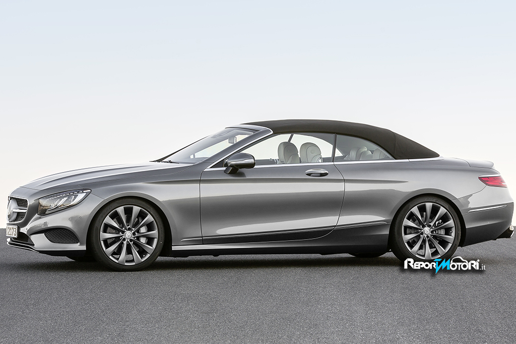 Esteticamente, nonostante le dimensioni impotenti, parliamo di un corpo macchina lungo 5,027 metri e largo 1,899 metri, la nuova Classe S Cabrio si presenta in tutta la sua bellezza armonica grazie a linee proporzionate ed ad una fiancata che anche per effetto della dropping line ( elemento stilistico che contribuisce a creare giochi di luci ed ombre sul laterale ) dona slancio alla corpo vettura.