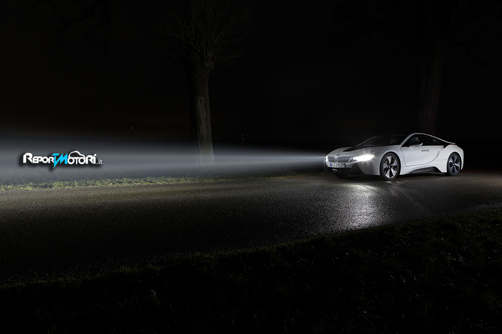 La BMW i8 è la prima automobile di serie al mondo equipaggiata con questa innovativa luce: i raggi emessi da piccoli diodi laser vengono trasformati generando una bianchissima luce bianca.