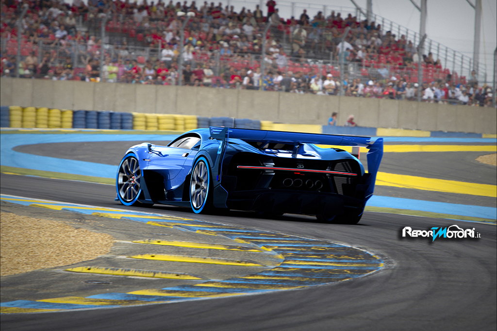 Bugatti pubblica le prime immagini, digitali, della sua nuova punta di diamante, la Vision Gran Turismo , un progetto che rende omaggio alla tradizionale storia del marchio, una vita dedicata alle corse che parte dagli anni venti e dalle sue numerose vittorie alla 24 ore di Le Mans .