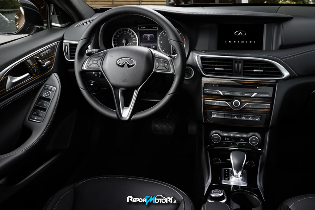 Per gli interni si è seguita la strada della massima integrazione uomo – macchina: lo schermo multifunzione posto al centro della plancia accoglie tutte le funzioni dell’impianto multimediale della Q30.