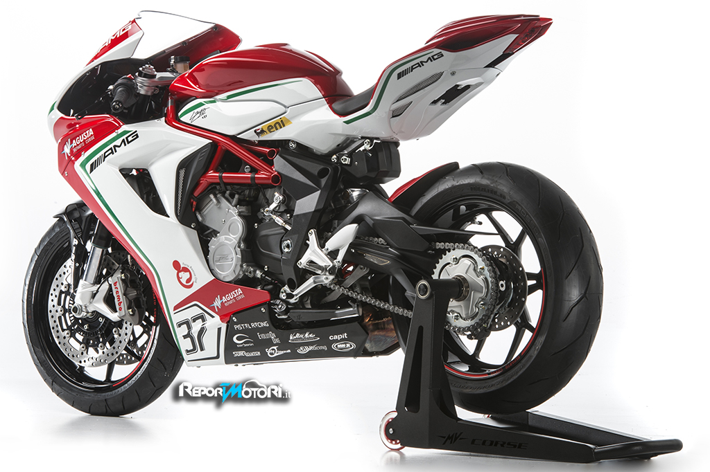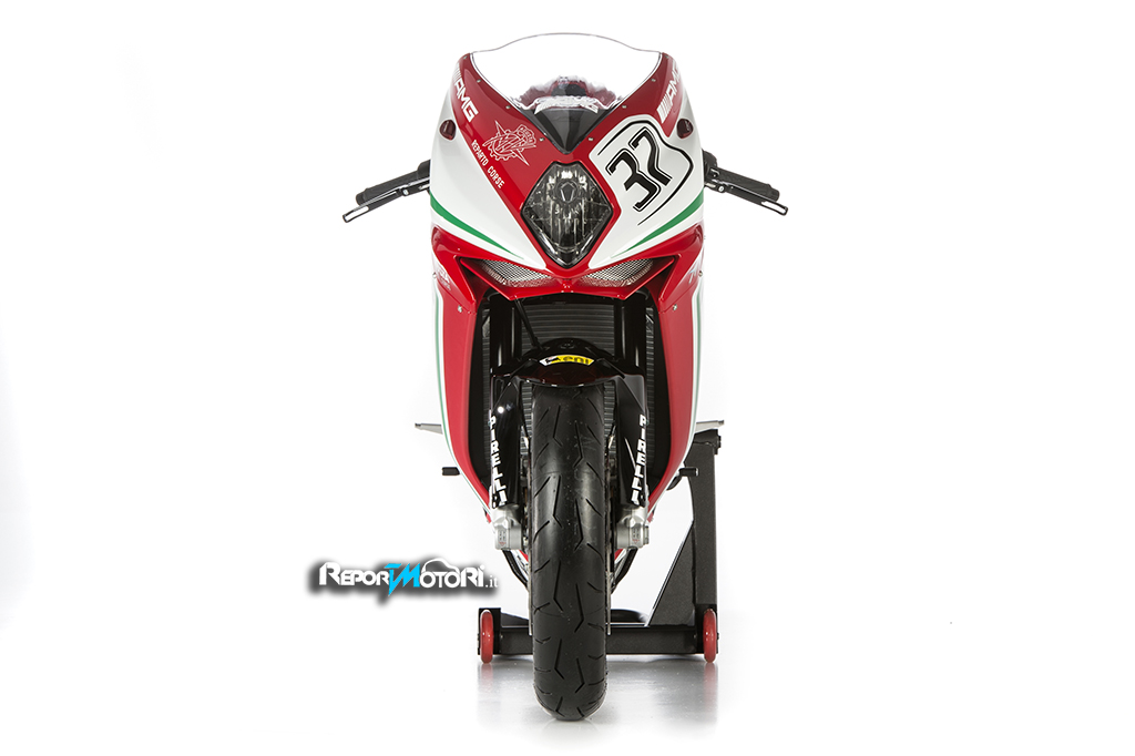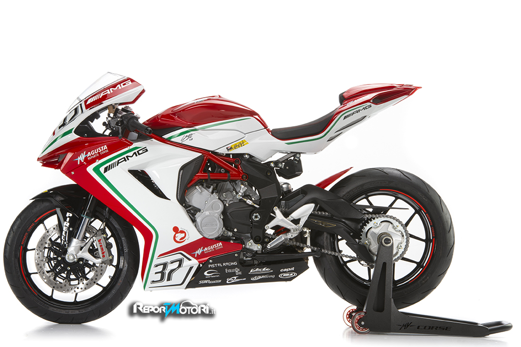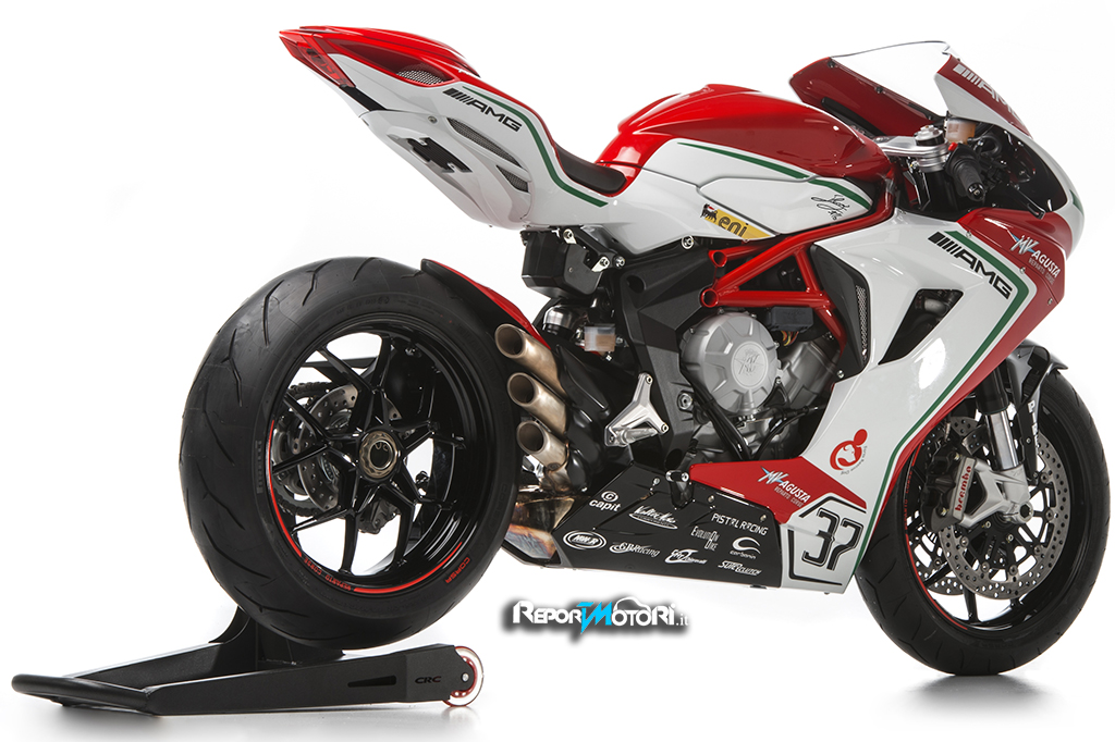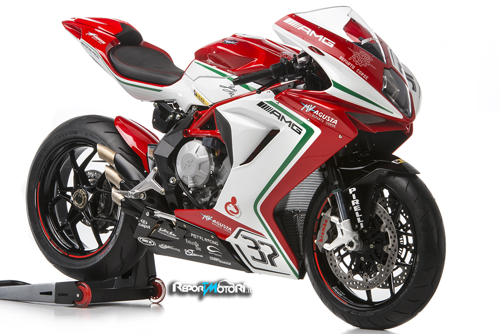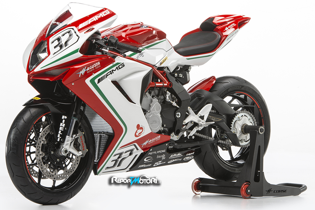 Ogni esemplare della MV Agusta F3RC , riporterà sul fianchetto destro la firma di Jules Cluzel #16 e sul sinistro quella di Lorenzo Zanetto #87 .