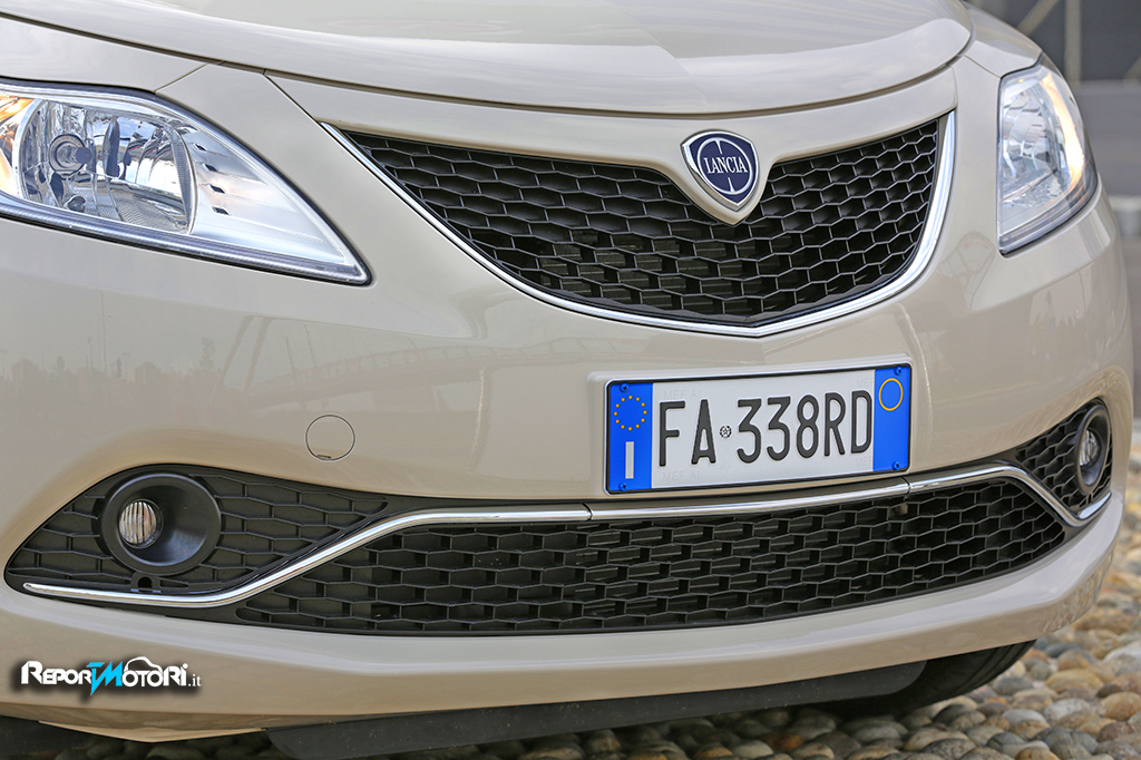 Cambia la nuova griglia anteriore, ora ha una struttura a nido d’ape ed incorpora lo scudetto Lancia , mentre più in basso troviamo una cornice cromata che delinea i due proiettori fendinebbia .
