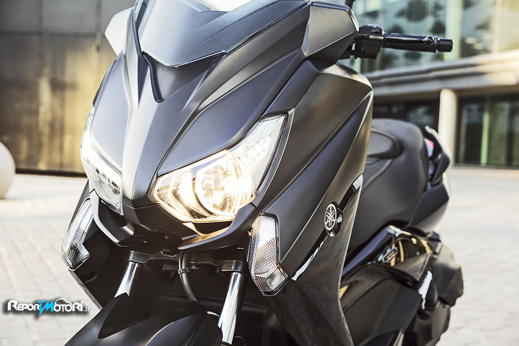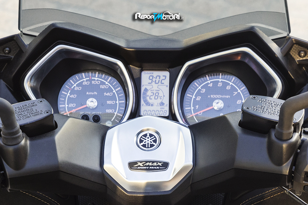 Tachimetro e manubrio, come sulle più cattive sportive, sono in alluminio satinato; presenti anche le luci di posizione a LED, caratteristica che rende riconoscibile il nuovo X-MAX Iron Max .