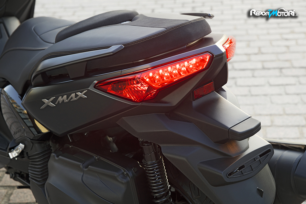 E’ un maxi scooter di fascia alta ideale per gli spostamenti a medio e lungo raggio, ha stile sportivo, grazie anche a numerosi particolari che ne rievocano la sua indole aggressiva: dalla sella speciale con logo X-MAX e cuciture in rilievo al poggiaschiena , offerto di serie, alle finiture in pelle nel retro scudo, per arrivare alle immancabili pedane in alluminio ed alla retroilluminazione bianca della strumentazione ( solo per 250 e 125 ) .