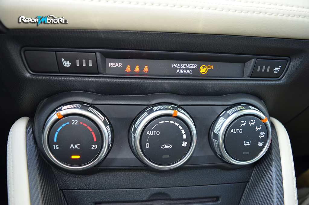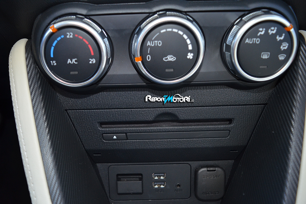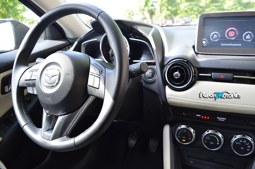 Al top c’è la Exceed , allestimento presente sul modello da noi provato, che oltre a prevedere gli accessori presenti sulla Evolve, offre anche i fari Full LED , il climatizzatore automatico , gli interni con inserti in ecopelle , i cerchi in lega da 16 pollici , radio con lettore MP3 e sei altoparlanti , i sensori parcheggio e pioggia , il Mazda Connect con navigatore integrato e l’ HMI Commander .