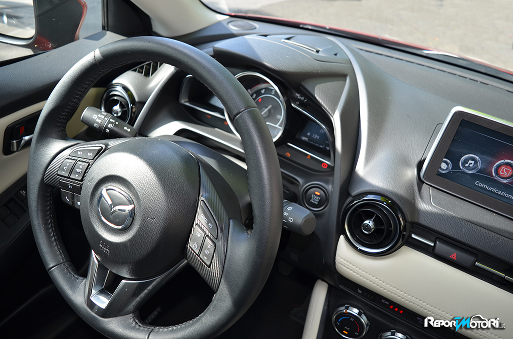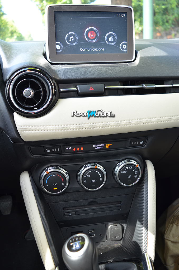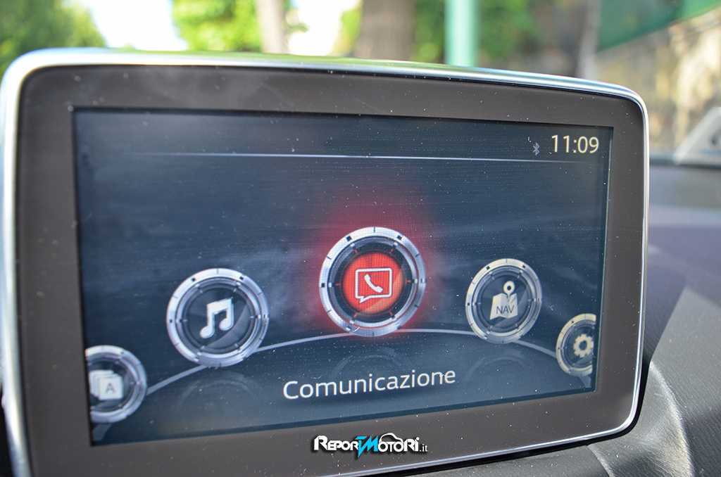 La Mazda 2 oggetto della nostra prova su strada era equipaggiata con il sistema MZD Connect : si tratta di un avanzato impianto che grazie ad un display touch screen da 7 pollici ,fornisce numerose indicazioni : dalle informazioni sul traffico al collegamento con i social network ( Facebook , Twitter etc. . ) fino alla connessione con il proprio smartphone per accedere a eventuali brani musicali via bluetooth .