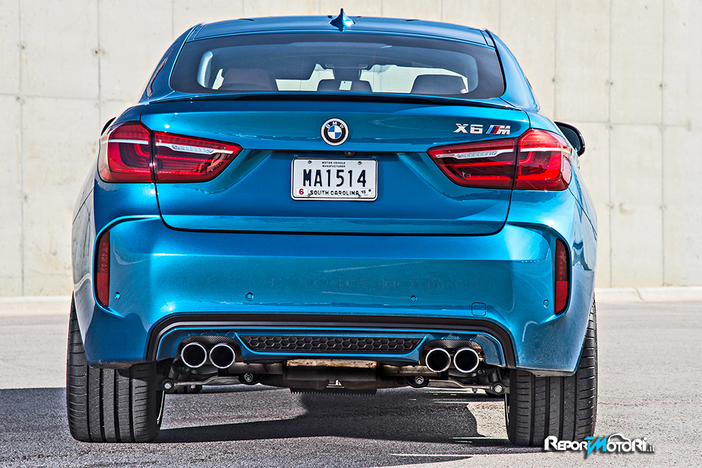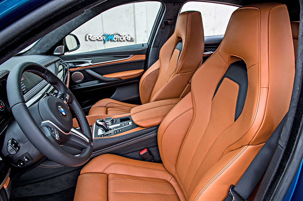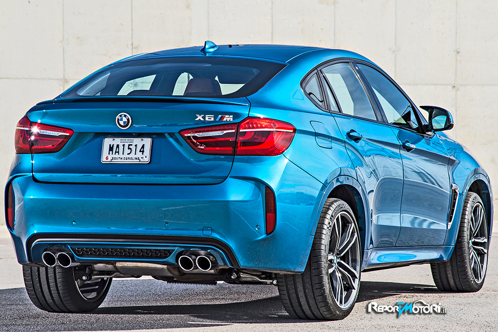 Un frontale ricco di particolari da vera M ed un posteriore che , complice i quattro tubi di scarico , il paraurti che incorpora vistose prese d’aria laterali ed il massiccio spoiler posteriore , contribuisce a rendere la X6 M , un mostro di adrenalina !