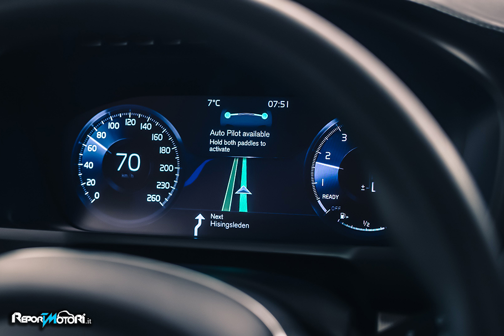 Quando si è in prossimità di un percorso su cui è disponibile il sistema di guida autonoma , il cervello elettronico presente sulla Volvo , segnalerà al conducente che l’ Auto Pilot è pronto per l’attivazione .