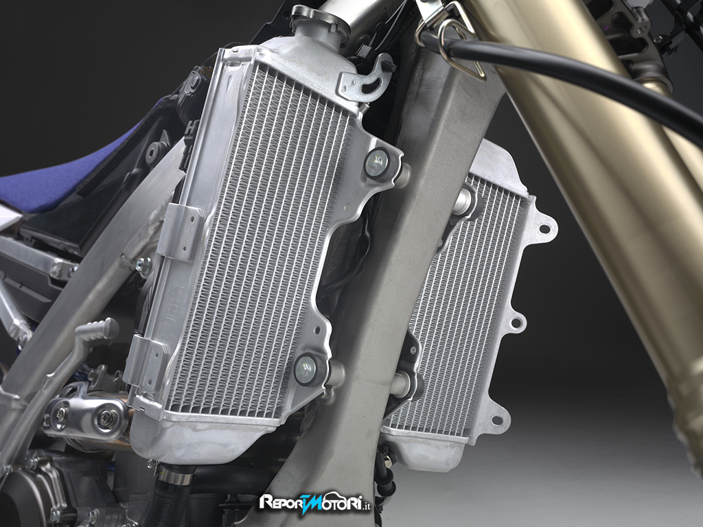 Efficienza e potenza ma anche durata ed affidabilità , il nuovo motore della Yamaha WR450F è dotato di un sistema di raffreddamento particolarmente efficiente : costituito da nuovi radiatori che hanno un differente angolo di inclinazione della massa radiante rispetto alla serie YZ-F , inoltre le griglie sono state realizzate appositamente per l’impiego nell’enduro e nei rally .