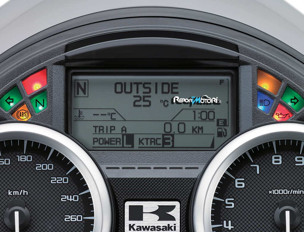 Ma novità non solo puramente tecniche : la nuova Kawasaki ZZR1400 2016 monta una nuova strumentazione con quadranti totalmente inediti ed un display LCD dall’ottima visibilità .