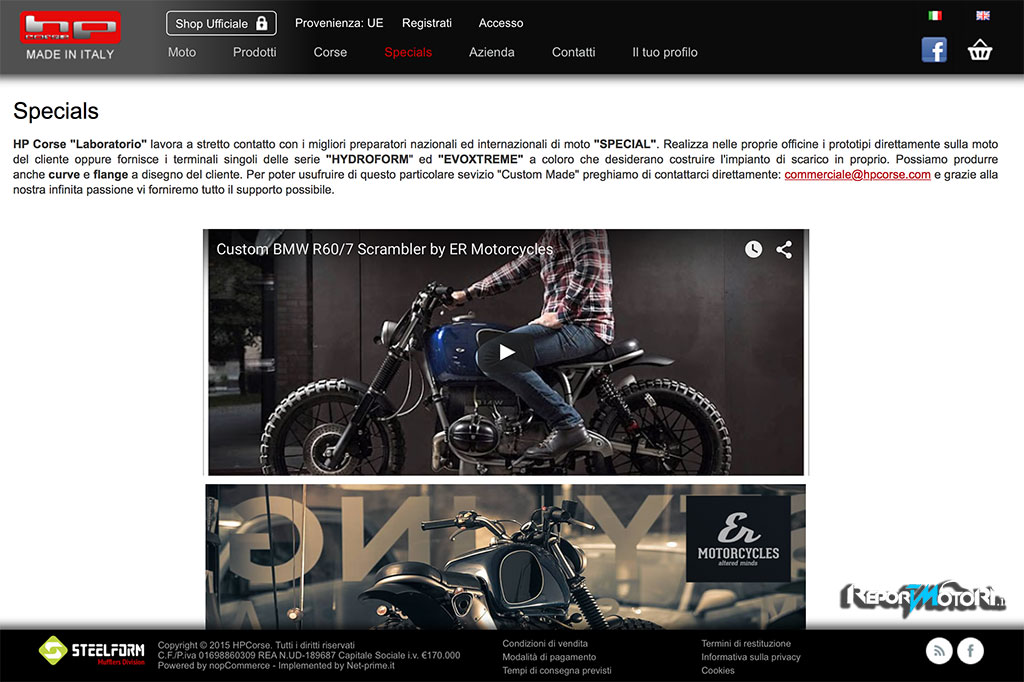 La sezione “ Moto “ è divisa per marca e modello e tutte prevedono un finale HP Corse dedicato : la ricerca è immediata così come la possibilità di avere ulteriori informazioni sui prezzi e dettagli tecnici .