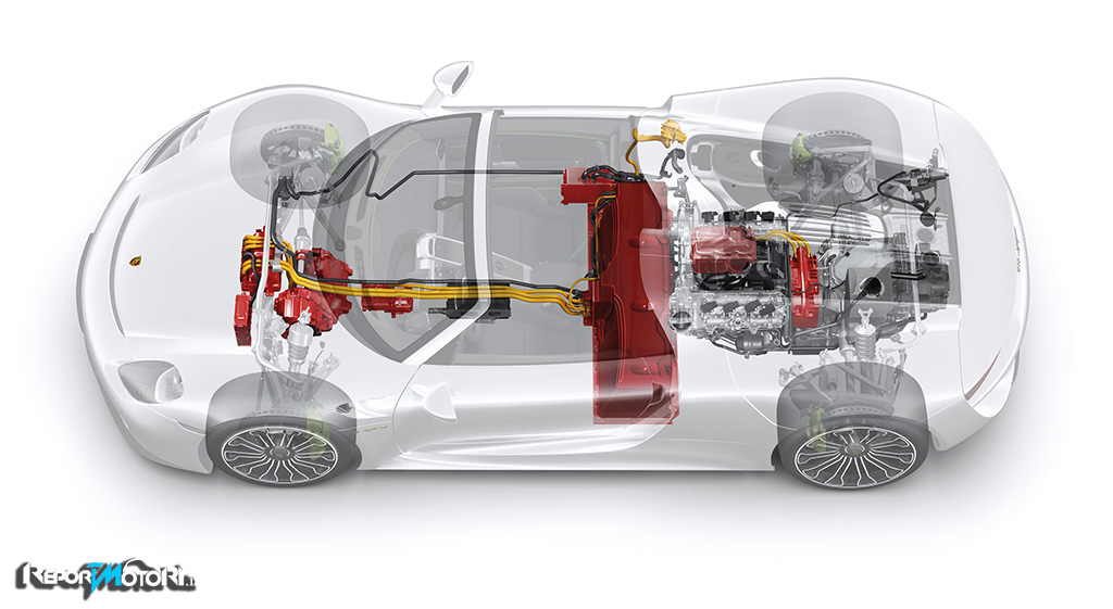 Sulla Porsche 918 Spyder approdano una serie di soluzioni tecniche mai viste prima su una vettura prodotta in serie : un motore a combustione dalle alte prestazioni che lavora in simbiosi con due motori elettrici , un progetto futuristico e difficilissimo da realizzare che trovano applicazione ed efficienza su questa bellissima vettura scoperta .