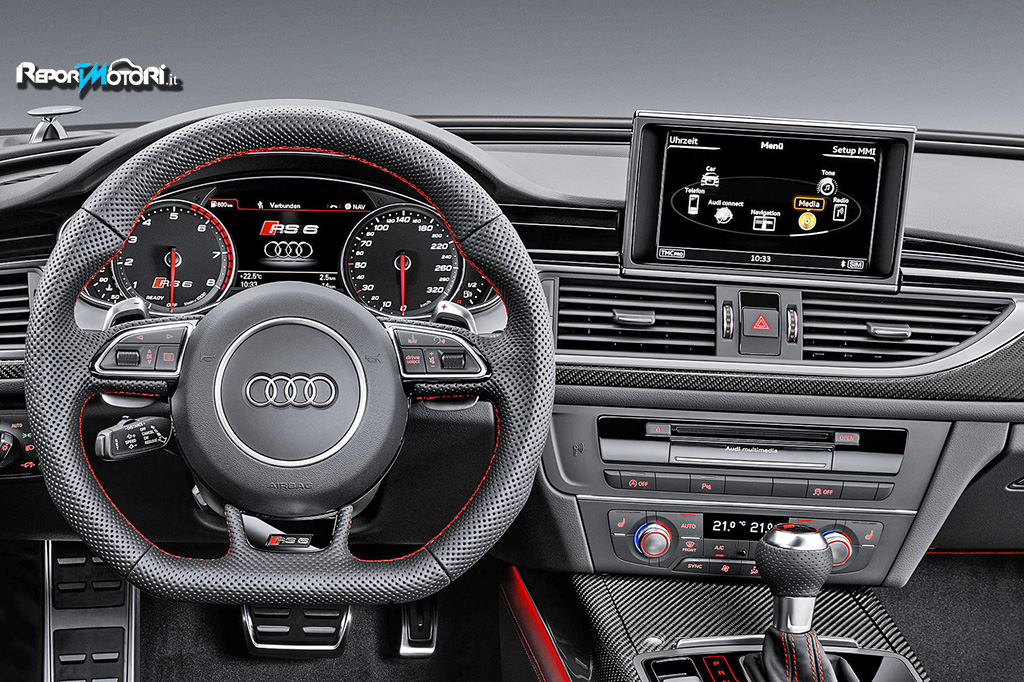 L’assetto risulta ribassato di 20mm , mentre così come accade sulla nuova Audi R8 , il conducente della nuova Audi RS 6 Avant Performance può scegliere , durante la marcia , tra le modalità auto , comfort , dynamic ed individual senza mai distogliere lo sguardo dalla strada, grazie alla presenza di un tasto specifico collocato sul volante sportivo multifunzionale RS , rivestito rigorosamente in pelle .