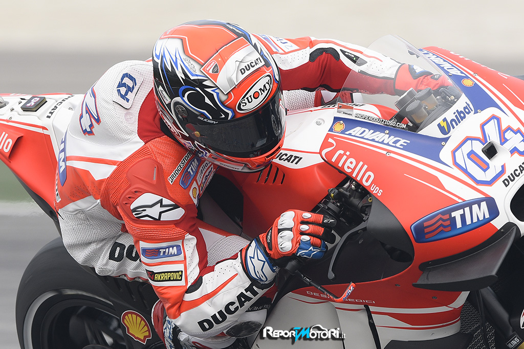 Andrea Iannone (Ducati Team #29) – 2’00”224 (6°) : “Credo che oggi fosse difficile per me poter fare qualcosa di più. Ho provato a dare il massimo, ma faccio abbastanza fatica in percorrenza di curva e quindi non sono riuscito ad andare più forte. Ovviamente non siamo contenti, ma ora dobbiamo restare concentrati e continuare a lavorare per capire la direzione da prendere per minimizzare i nostri problemi o almeno riuscire a tamponarli. Non mi aspetto grandissimi cambiamenti per la gara di domani, però tutto sommato non sono messo poi così male. In FP4, come passo gara, dopo Dani e Marc ci siamo Jorge ed io e poi Vale, ma dovremo capire se e quanto cambierà la situazione con la gomma da gara.”