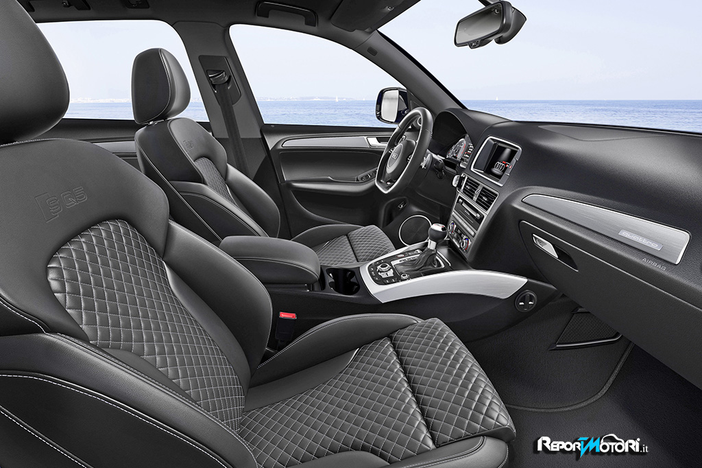 Esteticamente la nuova SQ5 TDI plus è riconoscibile per la mascherina anteriore single frame , per i gusci specchi retrovisori e spoiler posteriore in colore nero lucido così come per i montanti centrali e modanature esterne dei finestrini .
