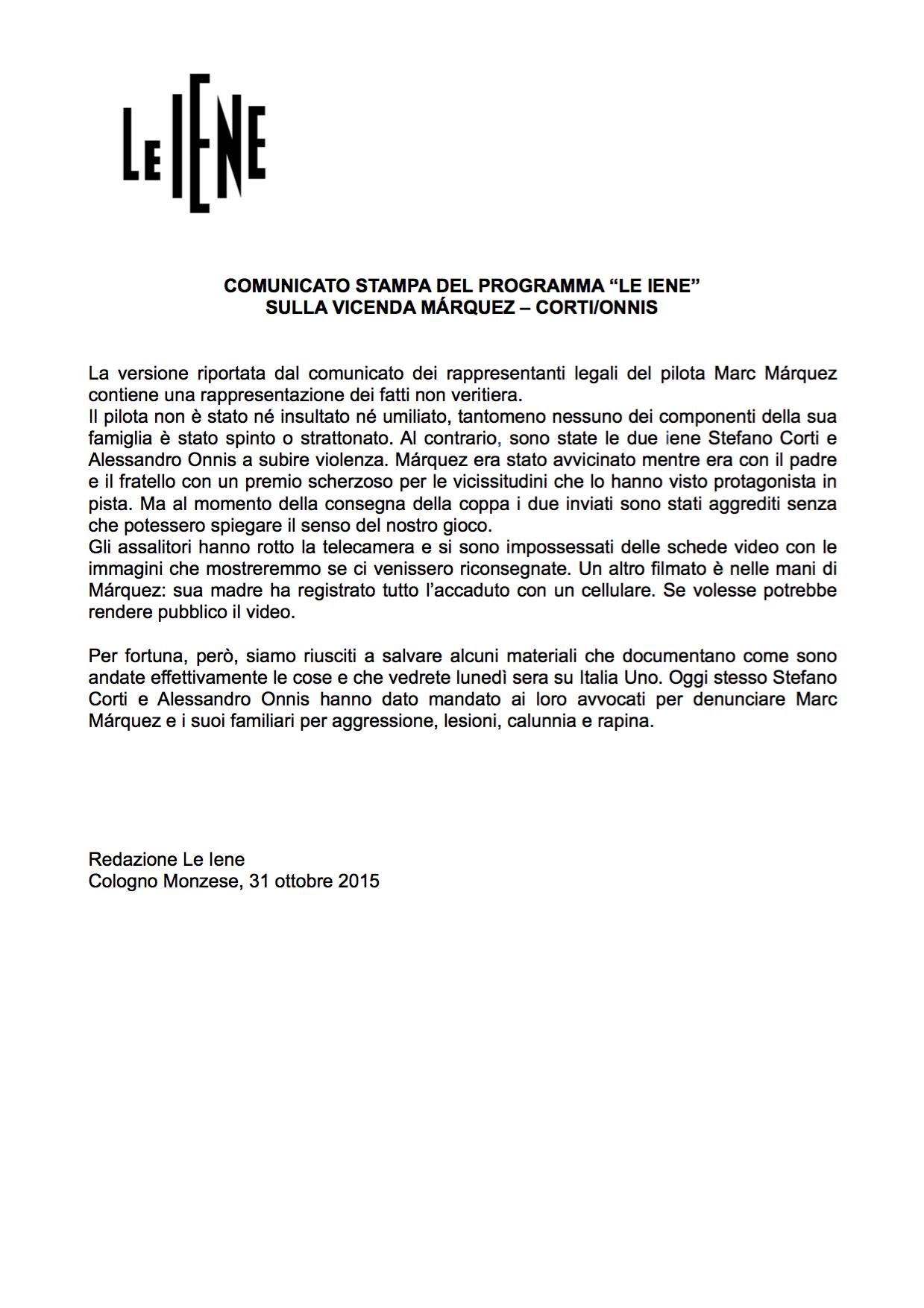 Secondo quanto riportato da “ Le Iene “ la famiglia Marquez ed il pilota spagnolo avrebbero aggredito i due inviati .