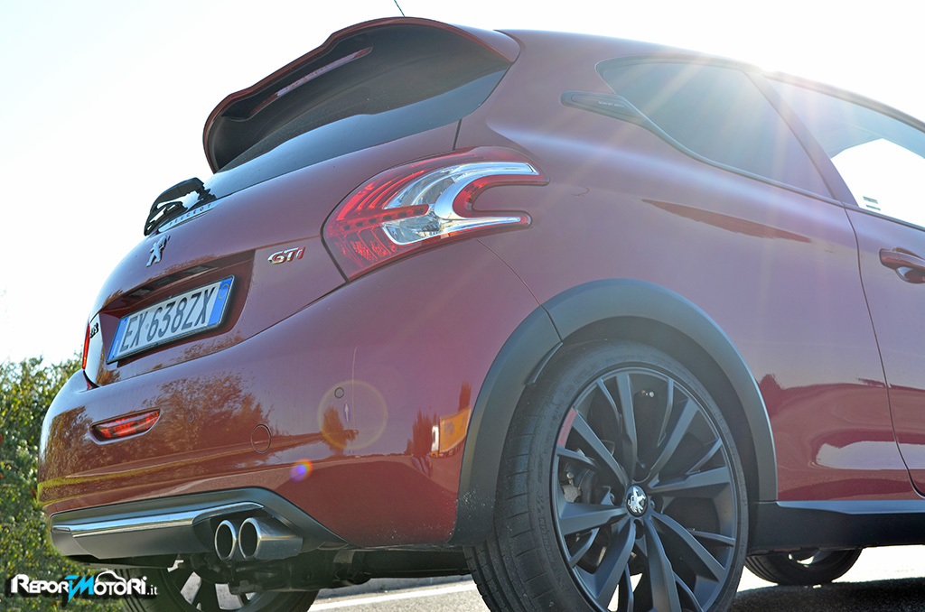 La nuova Peugeot 208 GTi 30th non fa nulla per passare inosservata , grazie alle carreggiate allargate ( +22 millimetri all’anteriore e +16 al posteriore ) , nella vista laterale ricorda una vetture da corsa , complice anche un assetto ribassato di 10 millimetri e cattivissimi cerchi da 18 pollici su cui calzano efficientissimi pneumatici Michelin Pilot Sport 205/40 .
