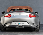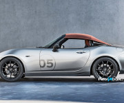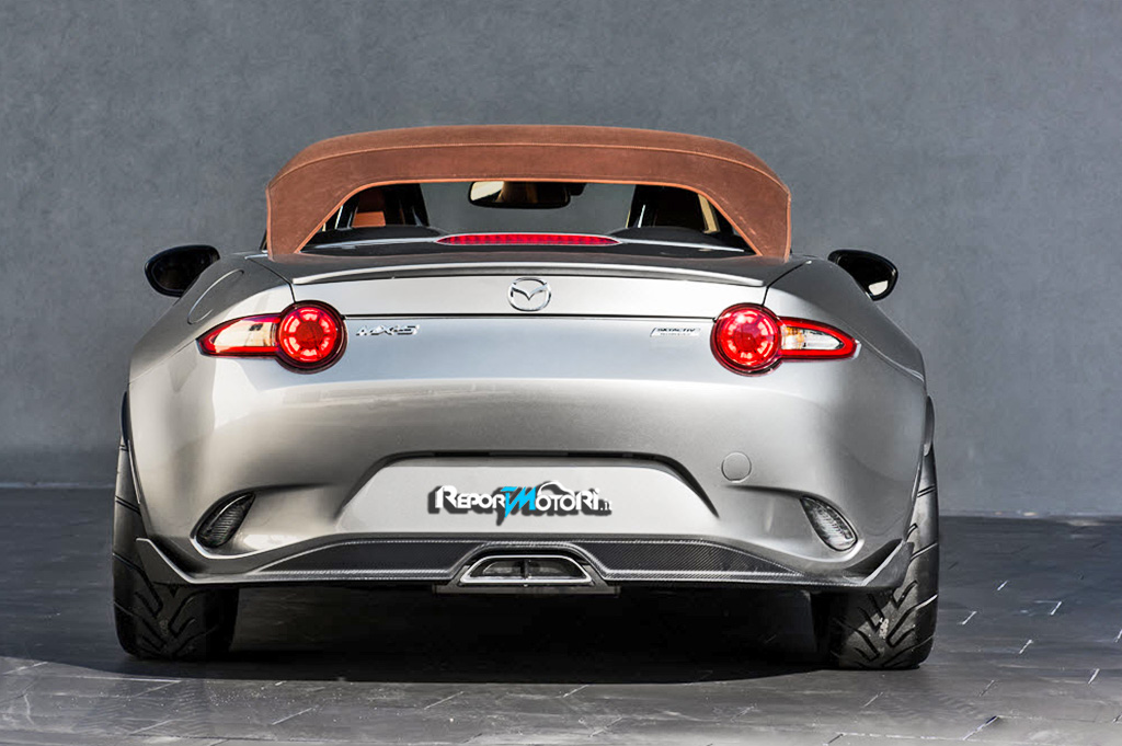 A prima vita ciò che colpisce osservando lateralmente è il bikini top, quel tetto in tela che modella il look della Mazda MX-5 Spyder rendendola una futuristica agé: la colorazione della carrozzeria è in Mercury Silver , il like aerodinamico che ne incattivisce l’aspetto presenta numerosi particolari in fibra di carbonio ed i cerchi da 17 pollici con pneumatici Yokohama Adan corsa RS II sottolineano il carattere sportiva di questa concept car.