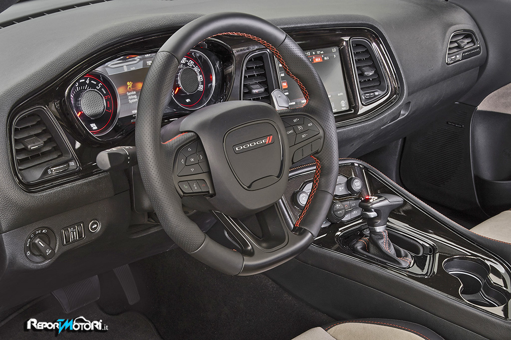 Anche i terminali di scarico, ora quadrupli, sono firmati dalla Mopar e sono verniciati in polvere Satin Black, come a indicare che da quei minacciosi tubi escono note cattive e rauche.
