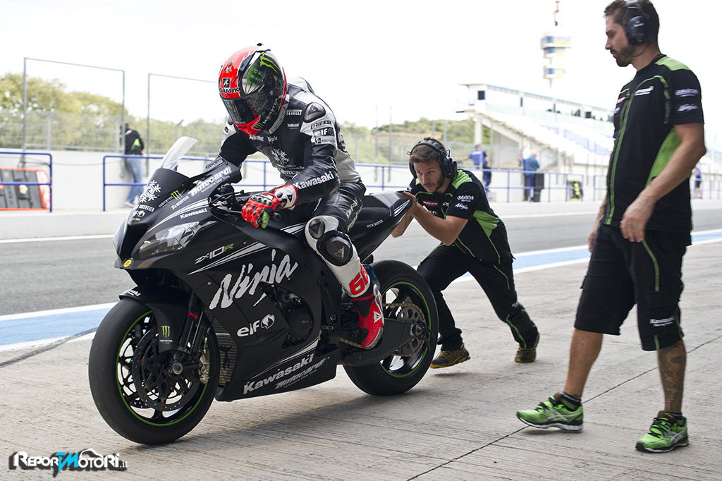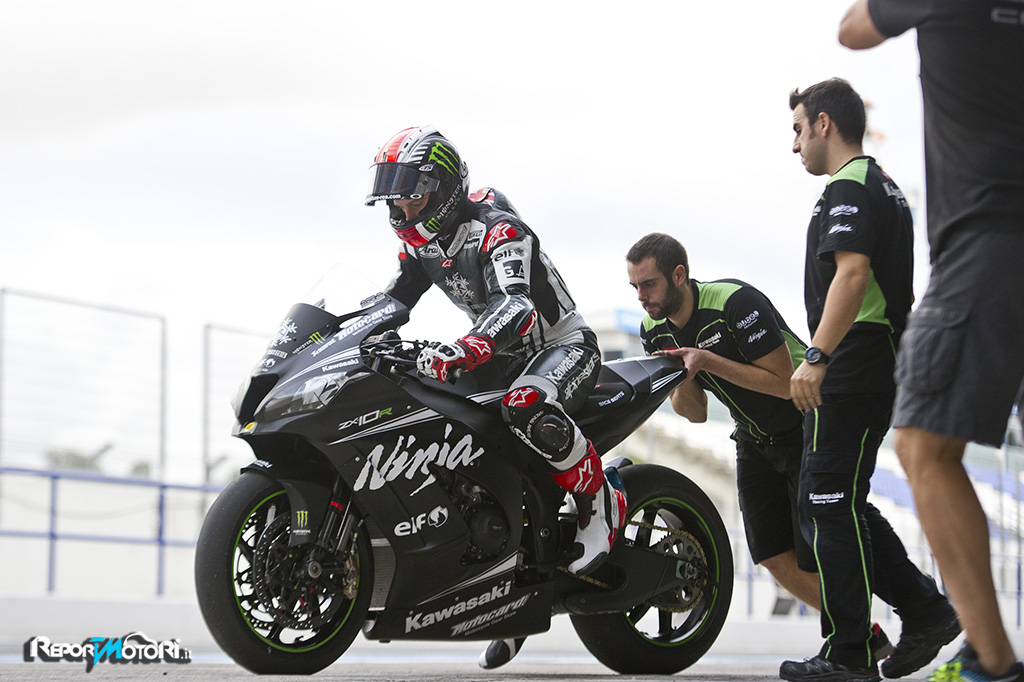 Ad Jerez sono stati esaminati numerosi nuovi componenti della Kawasaki ZX-10R 2016 : Jonathan Rea ha fatto diversi test comparativi entrando in circuito dapprima con la versione 2015 e poi 2016, chiudendo la sua prima sessione di prove con un best lap di 1’40.6.