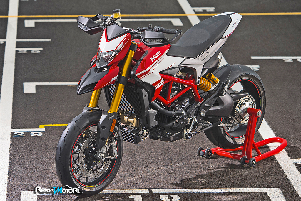 La sua livrea è ispirata a quella della potentissima Desmosedici GP15, ma di fatto la nuova proposta di Borgo Panigale punta sulla potenza e leggerezza: la Ducati Hypermotard SP ora può contare su una potenza massima di 113 cavalli e su di un incremento della coppia massima del ben 10%.
