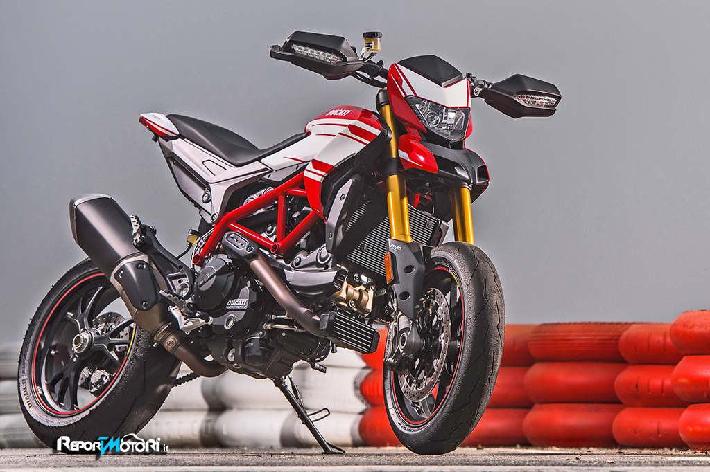 La sua livrea è ispirata a quella della potentissima Desmosedici GP15, ma di fatto la nuova proposta di Borgo Panigale punta sulla potenza e leggerezza: la Ducati Hypermotard SP ora può contare su una potenza massima di 113 cavalli e su di un incremento della coppia massima del ben 10%.