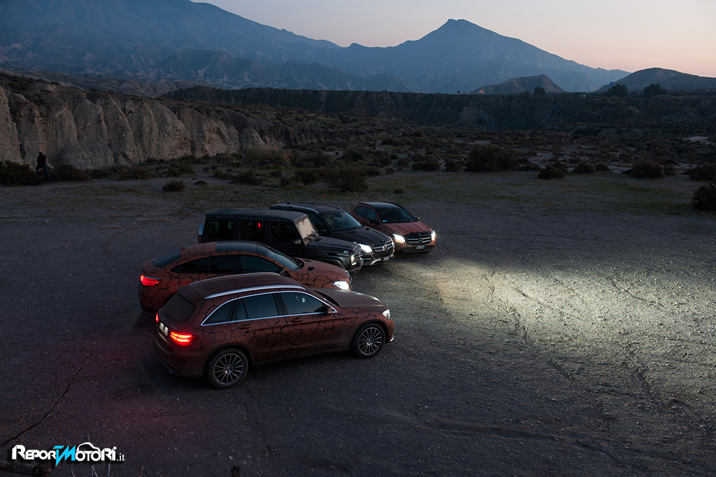 Lo scenario è di quelli che lasciano il segno, non è la prima volta che partecipiamo ad un evento stampa ma questo evento ha un qualcosa di magico, perché il percorso da affrontare è quello tipico del deserto e le vetture Mercedes impegnate hanno un look a dir poco originale: si parte per il deserto dell’Almeria, con tanto stupore ma anche con tanta voglia di scoprire come queste comode e lussuose SUV siano in grado di affrontare un orizzonte arso e roccioso .