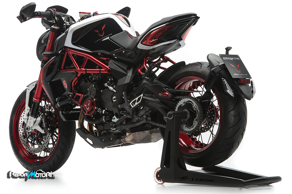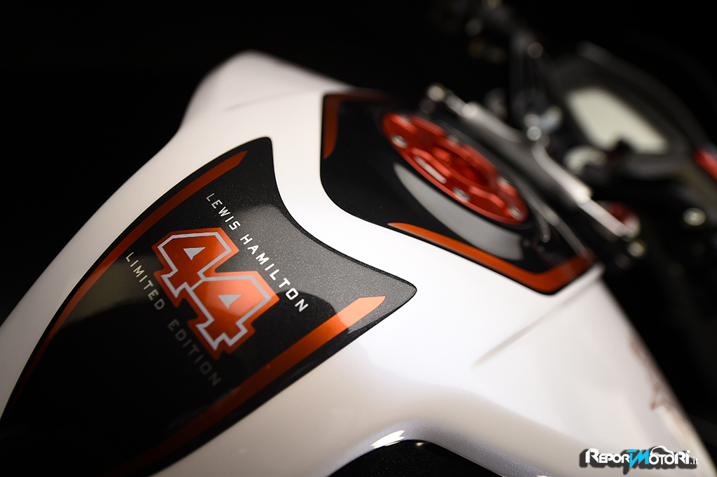 Una serie speciale firmata da un grande Campione : la MV Agusta Dragster RR LH44 è la moto che il tre volte Campione del Mondo di Formula 1, Lewis Hamilton, firma, in una limitatissima tiratura di esemplari .