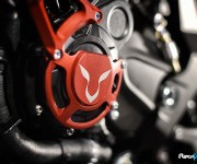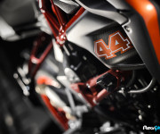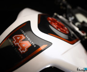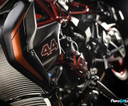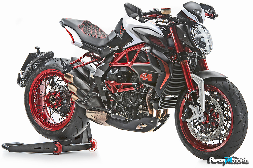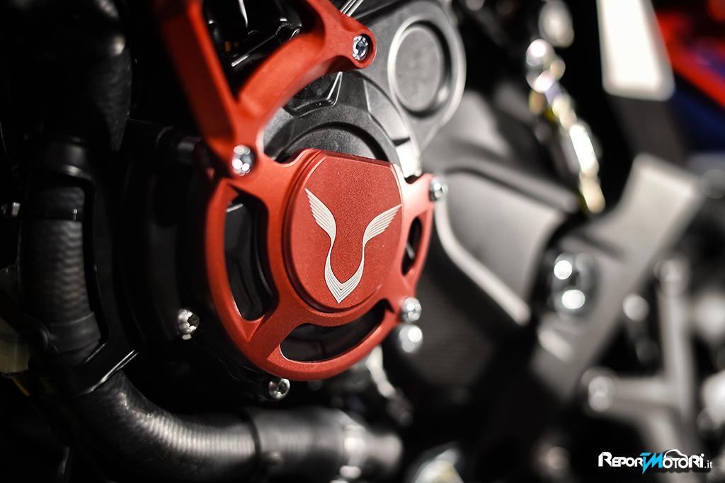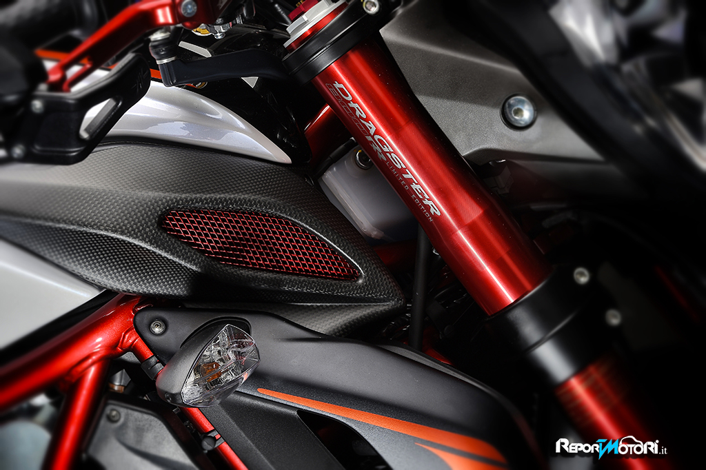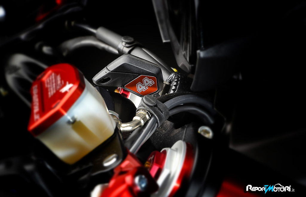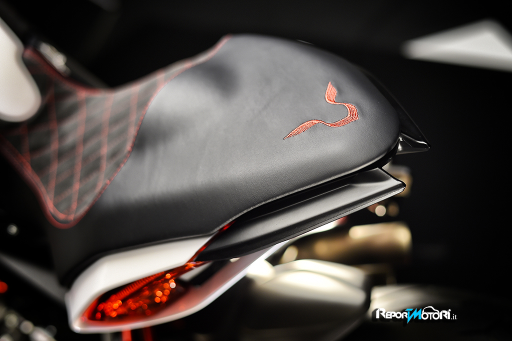 Il logo 44 campeggia sul frontale e lateralmente mentre il bianco perlato dona alla MV Agusta Dragster RR LH44 una cattiveria unica.