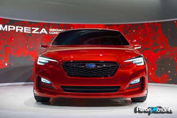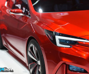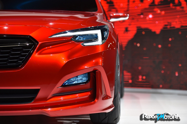 Ha due occhi tridimensionali , perché i fari del nuovo Impreza Concept sembrano dare dinamicità ad un frontale fluido, dove la classica mascherina Subaru viene separata dai fari a Led a forma di boomerang, dove un paraurti anteriore massiccio e ricco di curvature dona possanza ad un corpo che sembra nato nella galleria del vento .
