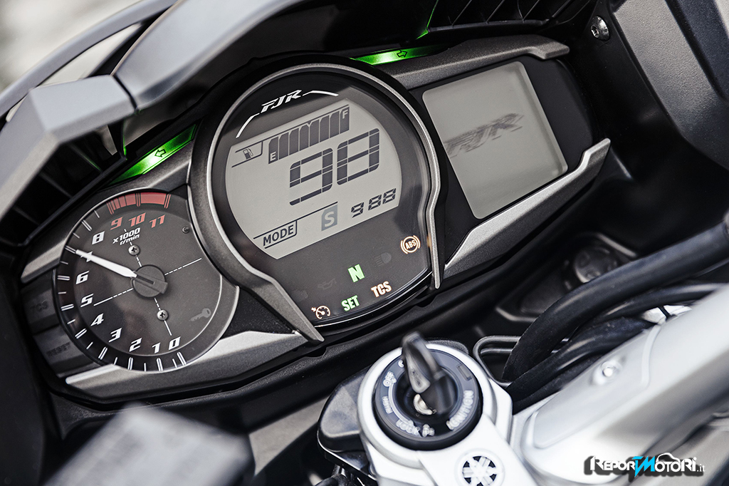 Sulla nuova Yamaha FJR1300 2016, debutta una nuova strumentazione, sportiva e completa, dotata di tre display principali in tinta canna di fucile .
