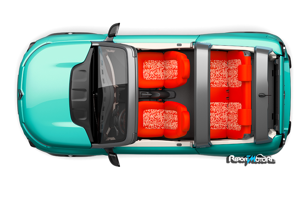 Sono ben quattro le tinte carrozzeria disponibili, dal blu all’arancione ottimista, al giallo, all’elegante beige, mentre due i colori del tetto, in tela, nero e rosso arancio.