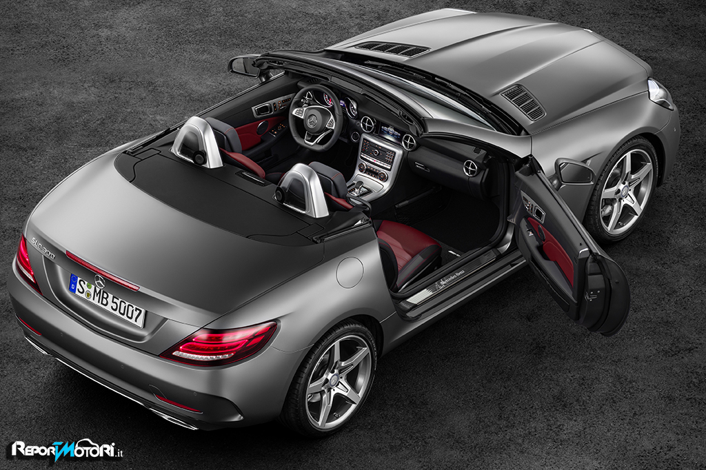 Sulla nuova Mercedes SLC è disponibile il nuovo cambio automatico 9G-Tronic, cambio particolarmente veloce e rapido nelle cambiate.
