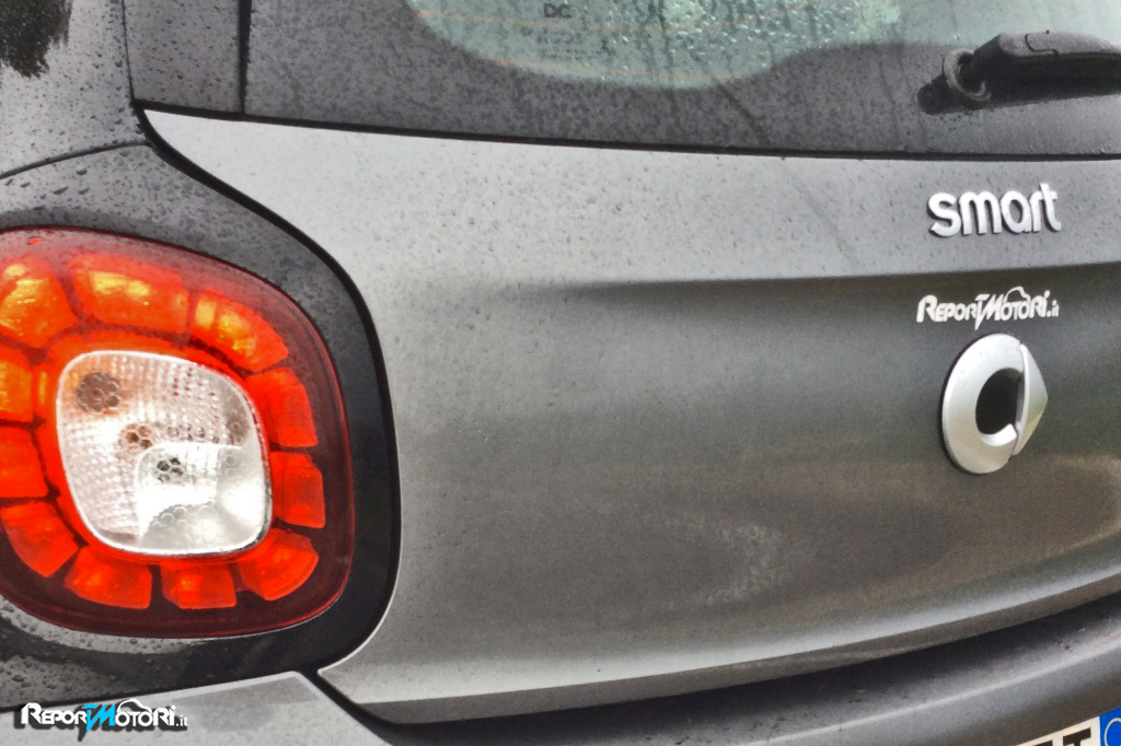 Il logo smart è presente al centro del portellone, mentre il suo pulsante di apertura è posizionato a ridosso del paraurti posteriore, in posizione accessibile ma . . . . nascosta .