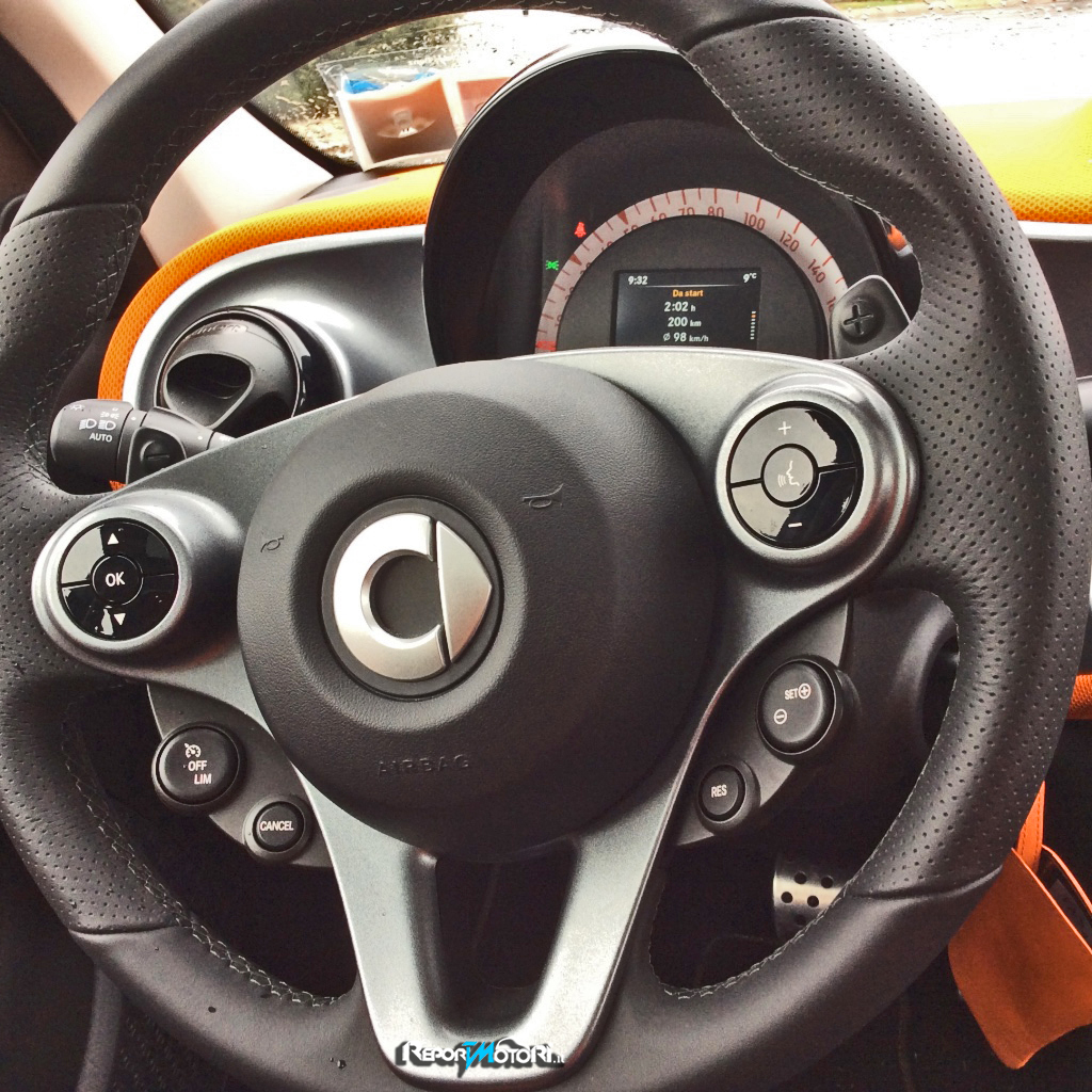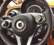 Vivavoce Bluetooth, cinque airbag, ESP, speed limit assist, assetto sportivo, scarico cromato, tetto trasparente, cerchi da 16 “ black, volante e leva del cambio in pelle, interni bicolore Black/Orange, Hill start, Crosswind : impossibile pretende altro da una smart !!!