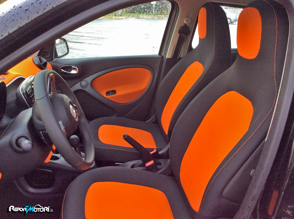 Salendo a bordo della nuova smart forfour sport editon #1 la vivacità dei rivestimenti è l’unico indizio che riporta all’idea di essere a bordo di una vettura nata per essere spartana e che su questo modello raccoglie tecnologia e abitabilità da vendere.