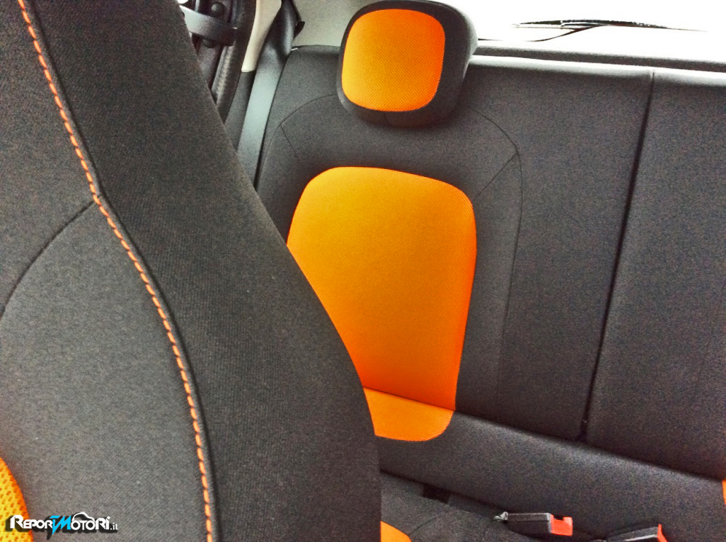 Comodi i sedili, presentano un rivestimento vivace, soluzione che ritroviamo anche sulla parte superiore ed inferiore della plancia.
