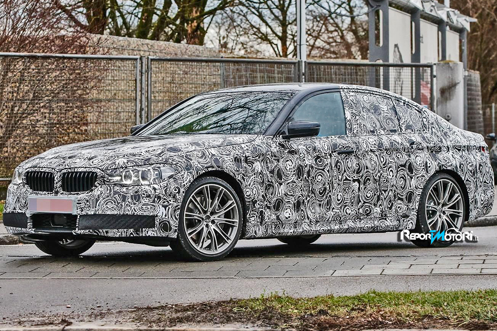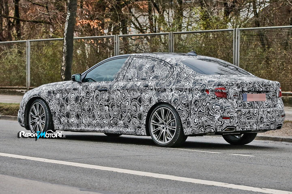 Anche se camuffata la linea definitiva è percepibile, ciò che subisce più modifiche è il frontale ora molto più lineare, un lifting che aggiorna la BMW Serie 5 G30 riportandola sullo stesso piano della sua sorella maggiore con ovvie minori proporzioni .