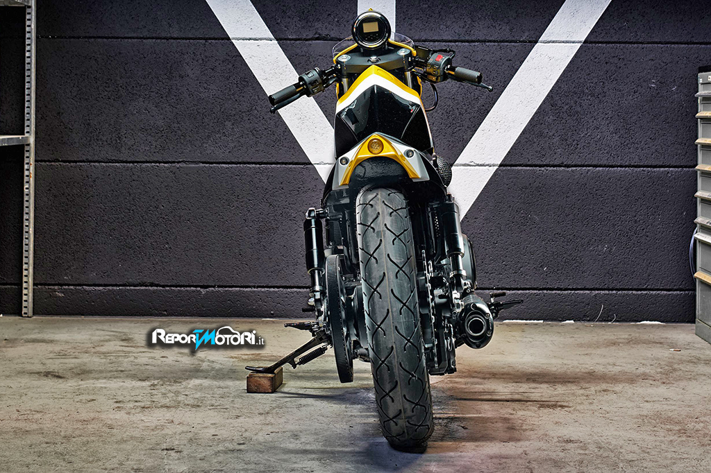 Nata tra anni fa grazie all’idea di Tom Mosimann, la GS Mashin è cresciuta nel tempo grazie alla sua abilità nel creare moto uniche ed originali, su questi presupporti nasce la Yamaha XV950 Ultra, una moto che abbina la leggerezza ad elementi unici e rigorosamente artigianali.