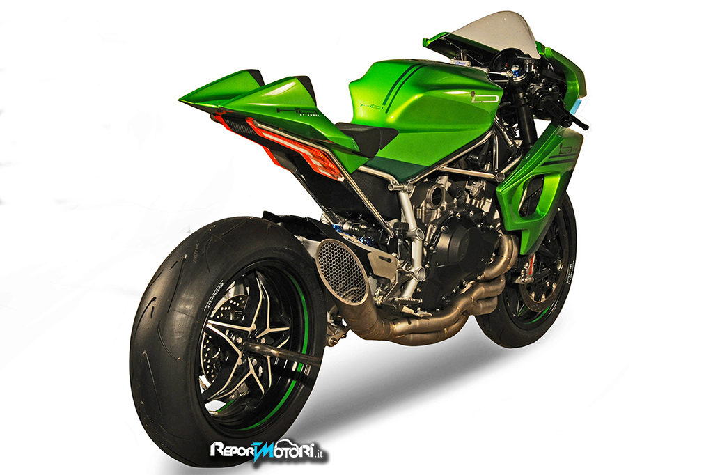 Linee futuristiche per la più potente moto giapponese di sempre, la Kawasaki Ninja H2 in questa configurazione non solo acquista grinta e cattiveria ma mostra un abito unico nel suo genere.