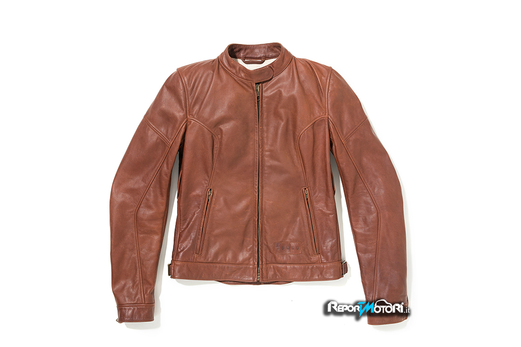 e maglieria, guanti e scarpe sono presentati sia per l’uomo che per la donna in diverse tonalità naturali. L’expertise dell’azienda nel lavorare la pelle pieno fiore di alta qualità si riflette nell’outerwear e negli accessori, proposti con una varietà di trattamenti e finiture. Gli articoli presentano numerosi aspetti funzionali, utilizzando materiali certificati e brevetti di derivazione strettamente motociclistica.