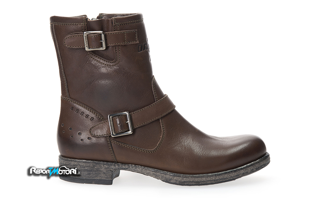 La linea vintage di Dainese presenta diversi tipi di calzature, arrichendosi degli scarponcini in pregiata pelle bovina cerata e tessuto canvas Walken e degli stivaletti in pelle bovina pieno fiore di alta qualità Vicky Lady. Tali calzature si caratterizzano per l’elevato livello di comfort e presentano gli elementi protettivi tipici che contraddistinguono i capi Dainese, quali gli inserti rigidi e il paracambio.