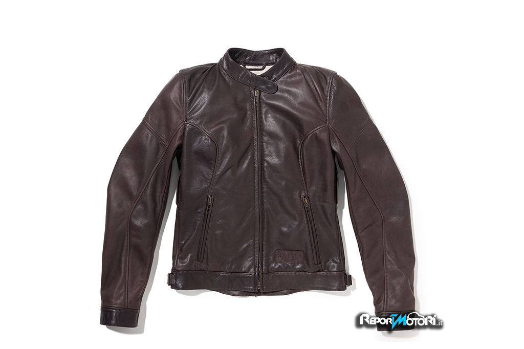 e maglieria, guanti e scarpe sono presentati sia per l’uomo che per la donna in diverse tonalità naturali. L’expertise dell’azienda nel lavorare la pelle pieno fiore di alta qualità si riflette nell’outerwear e negli accessori, proposti con una varietà di trattamenti e finiture. Gli articoli presentano numerosi aspetti funzionali, utilizzando materiali certificati e brevetti di derivazione strettamente motociclistica.