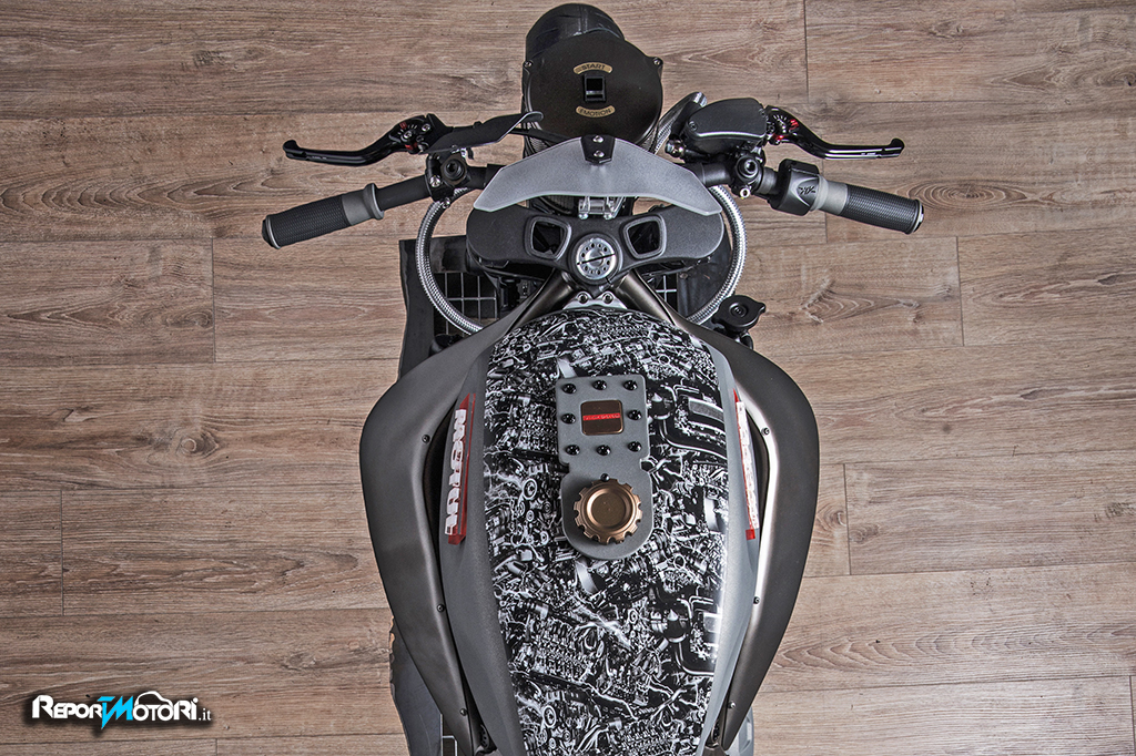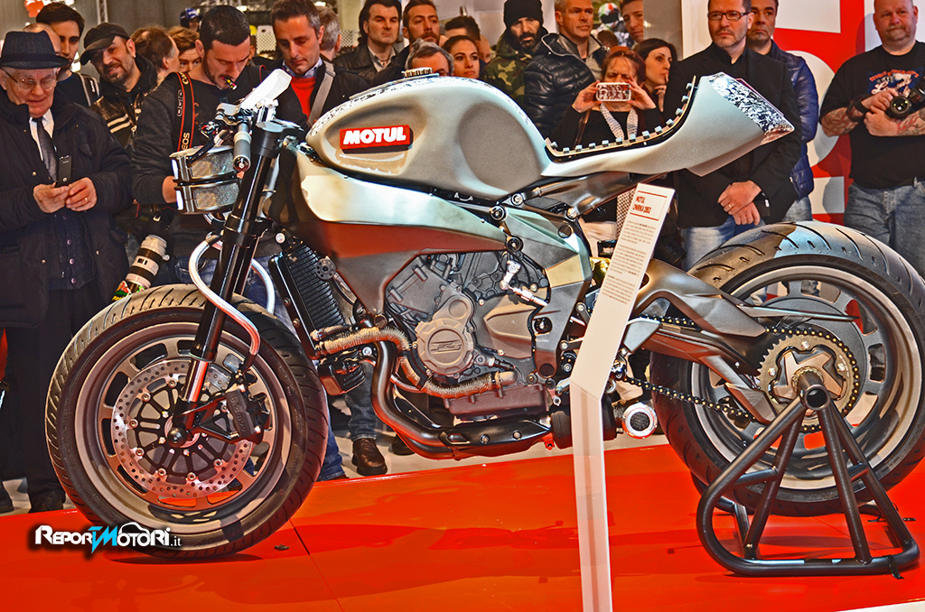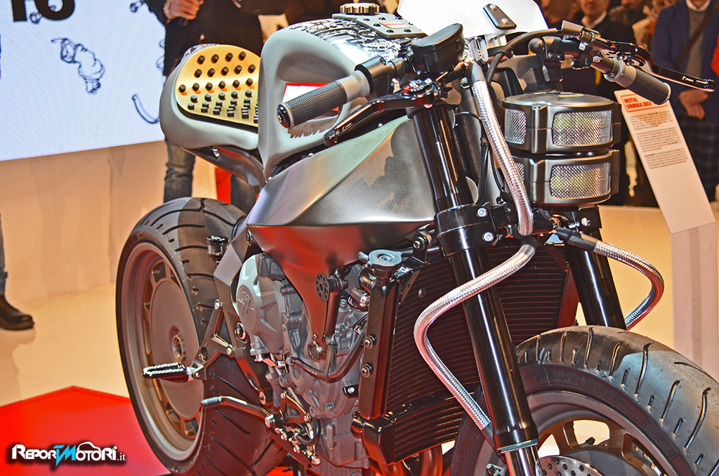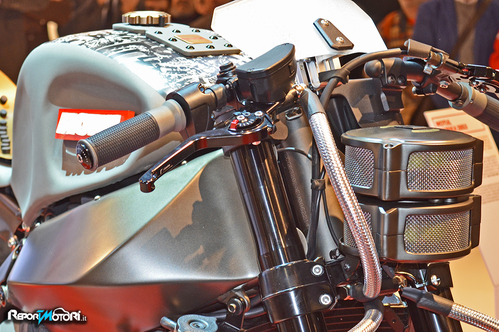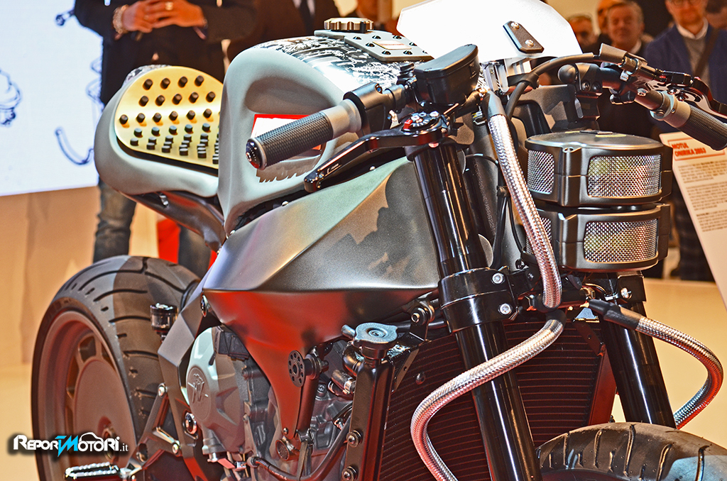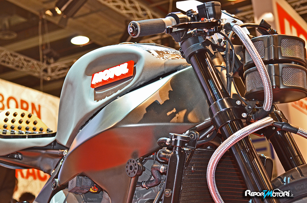 Al Motor Bike Expo 2016 sono andati in scena diversi contest creati per premiare le realizzazioni più affascinanti dei vari segmenti. Il premio per la migliore special “radicale” di Custom Chrome Europe è stato assegnato alla Ducky Cafe Tracker, realizzata dall’officina Yuri Shif Custom di Belarius, in Russia: una realtà già riconosciuta ai vertici nei più prestigiosi contest mondiali, che ha esposto a Verona un mezzo essenziale ed affascinante, con propulsore incastonato in un telaio rigido tubolare con sella ammortizzata.