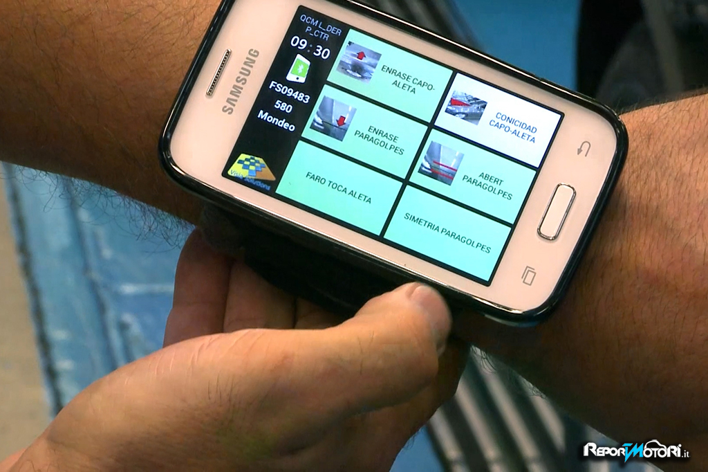 Grazie ad un dispositivo indossabile al polso, si tratta di uno smartphone, i tecnici riescono durante la fase di montaggio a controllare senza alcun stress fisico il grado di qualità di ogni vettura Ford .