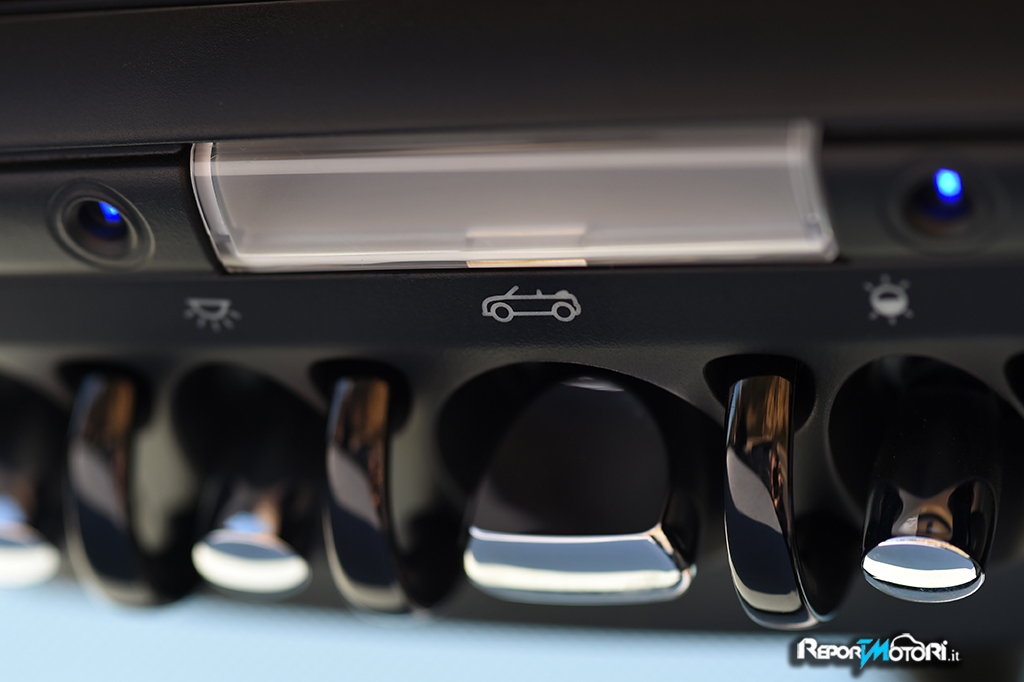 Sempre come accessorio viene offerta la capote MINI Yours con tessitura dell’innovativo motivo Union Jack, disponibile per la prima volta per un modello Cabrio. Ulteriori optional sono l’Always Open Timer completato da contenuti di visualizzazione nuovi, l’optional MINI Connected XL con avvertimento di pioggia, il climatizzatore automatico a due zone con modalità Cabrio e una protezione antivento dal peso alleggerito e l’utilizzo ottimizzato.